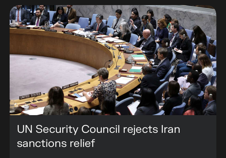 The United Nations Security Council has voted to reject a proposal for sanctions relief on Iran, a decision that underscores the deep divisions among world powers over Tehranâs role in regional security and global diplomacy.