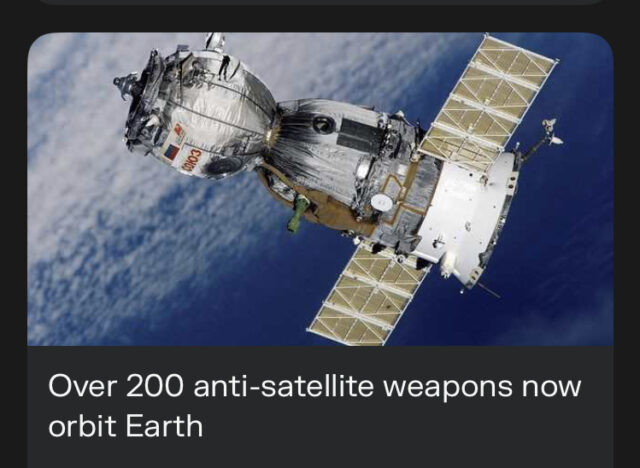 Space Militarization: Over 200 Anti-Satellite Weapons Now Orbit Earth