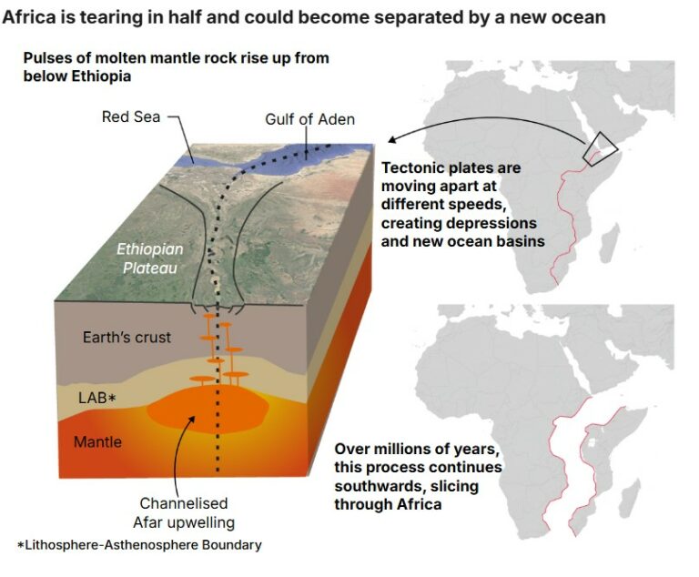 - This will effectively separate the Horn of Africa (the Somali Plate) from the rest of the continent, creating a new sea that will eventually evolve into a vast, new ocean.