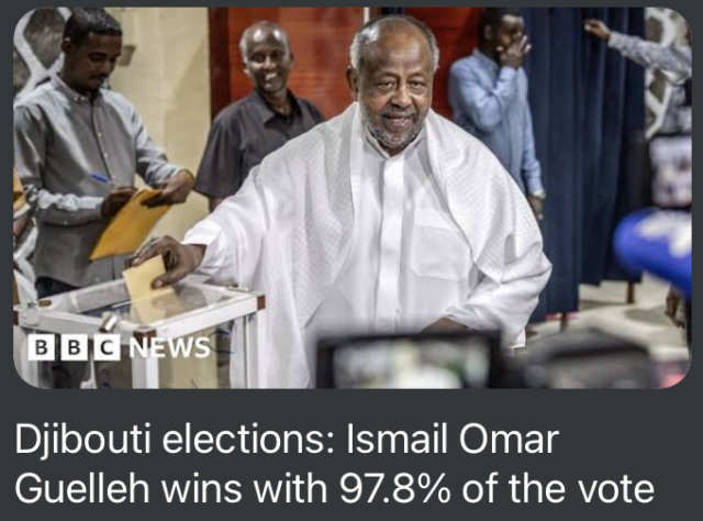 JABUUTI – Jamhuuriyadda Jabuuti ayaa gashay bog cusub oo taariikhi ah kadib markii Guddiga Madaxa-bannaan ee Doorashooyinka Qaranka ay ku dhawaaqeen natiijada rasmiga ah ee doorashadii madaxtinimo ee dalkaasi ka dhacday 9-kii Abriil 2026. Madaxweyne Ismaaciil Cumar Geelle, oo xilka hayay tan iyo sanadkii 1999-kii, ayaa markii lixaad loo doortay inuu hoggaamiyo dalka, isagoo helay 97.8% codadkii la dhiibtay.
