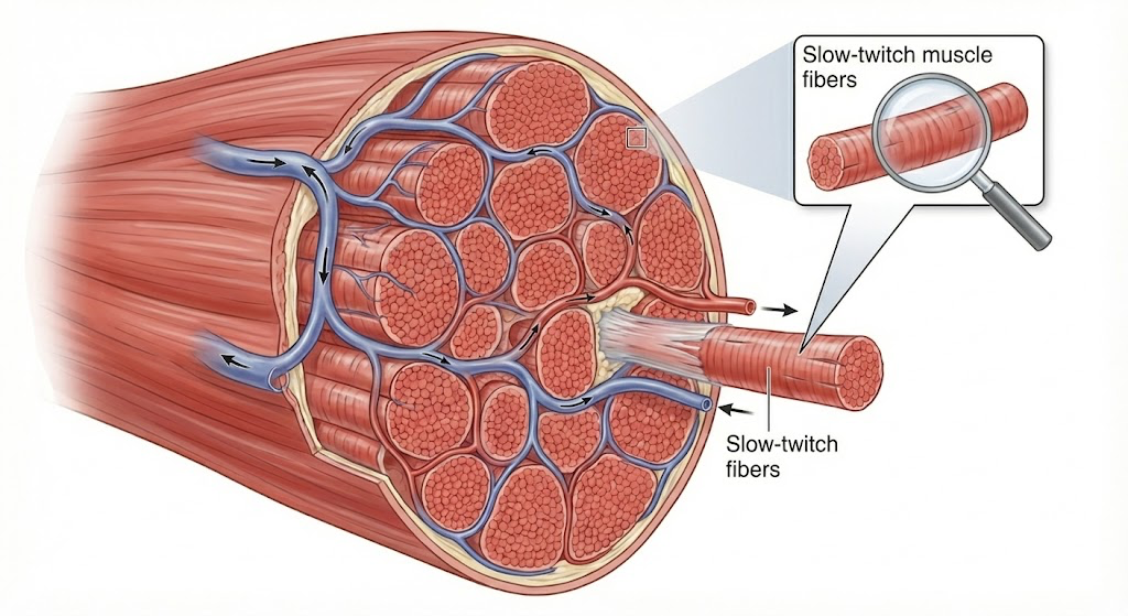 Muruqa Soleus wuxuu ka samaysan yahay inta badan Fiibraha Gaabiska ah (Slow-Twitch Fibers). Noocan fiibraha ah wuxuu u adkeysan karaa daalka muddo dheer. Tani waxay ka dhigeysaa mid ku habboon inuu shaqeeyo saacado badan isagoo kugu haya taagnaanta, adigoon dareemin daal degdeg ah.