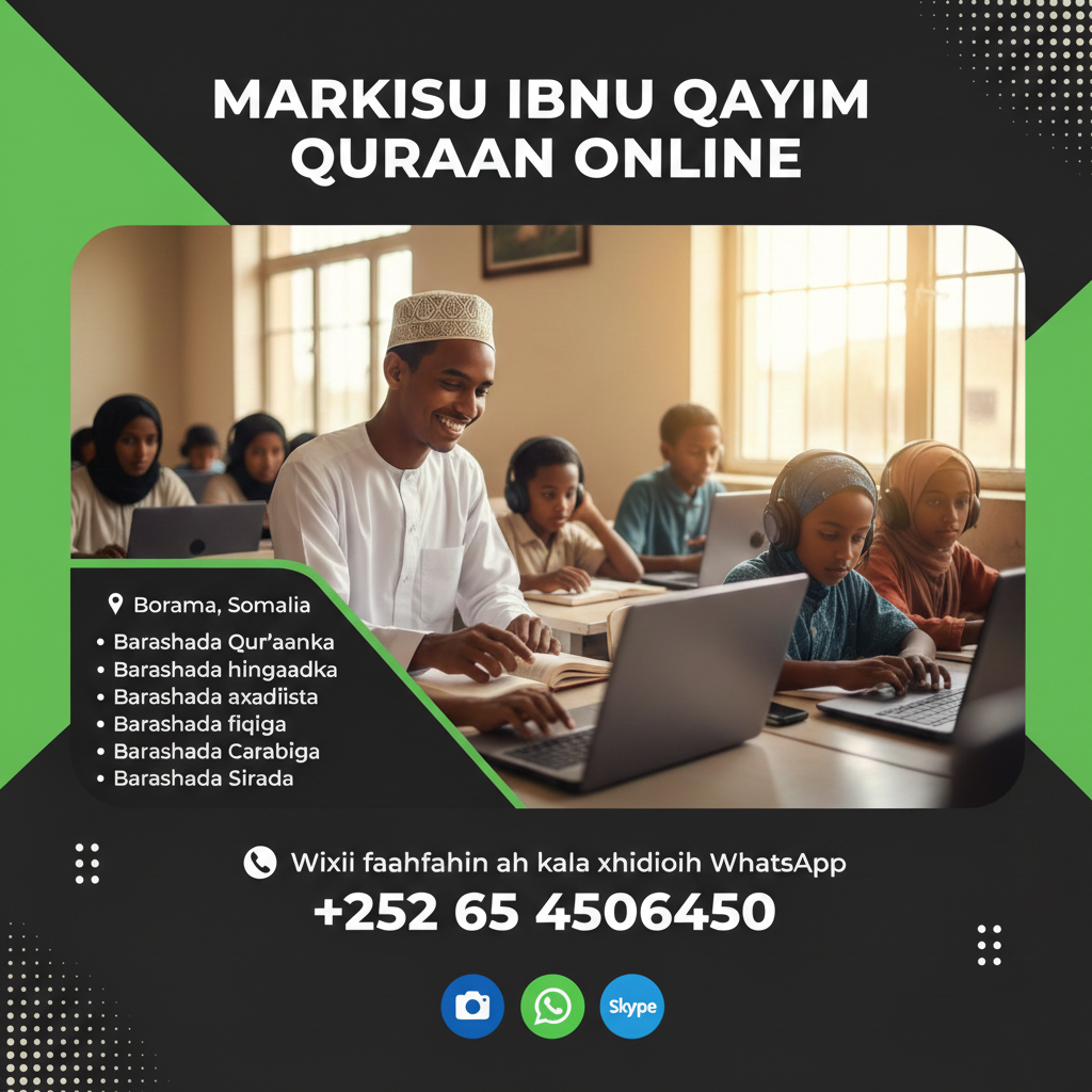 Ma doonaysaa in adiga ama ubadkaagu aad si sax ah u barataan fahamka iyo akhriska Qur’aanka Kariimka ah? Markaz Ibnu Qayim waxay kuu fududaysay barasho tayeysan oo gurigaaga dhexdiisa ah.